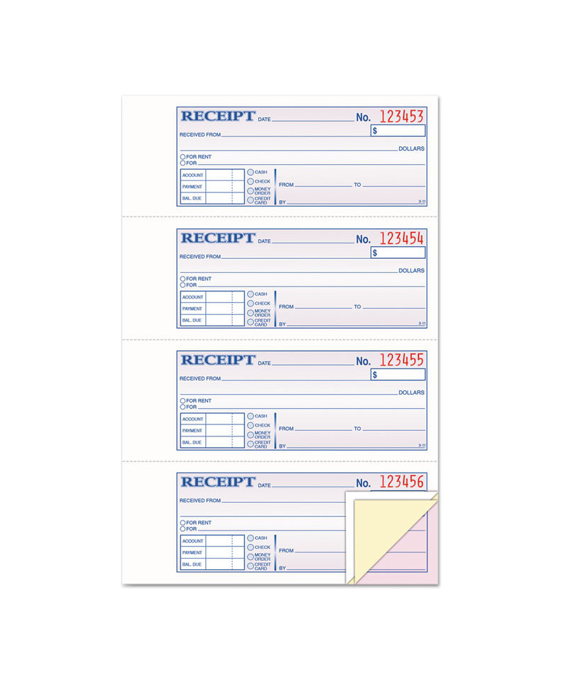 Add to cart Money and Rent Unnumbered Receipt Book, 5 1/2 x 2 3/4,... $13.30 Safety tint on original rubs off if erased. Unnumbered for customized record keeping.