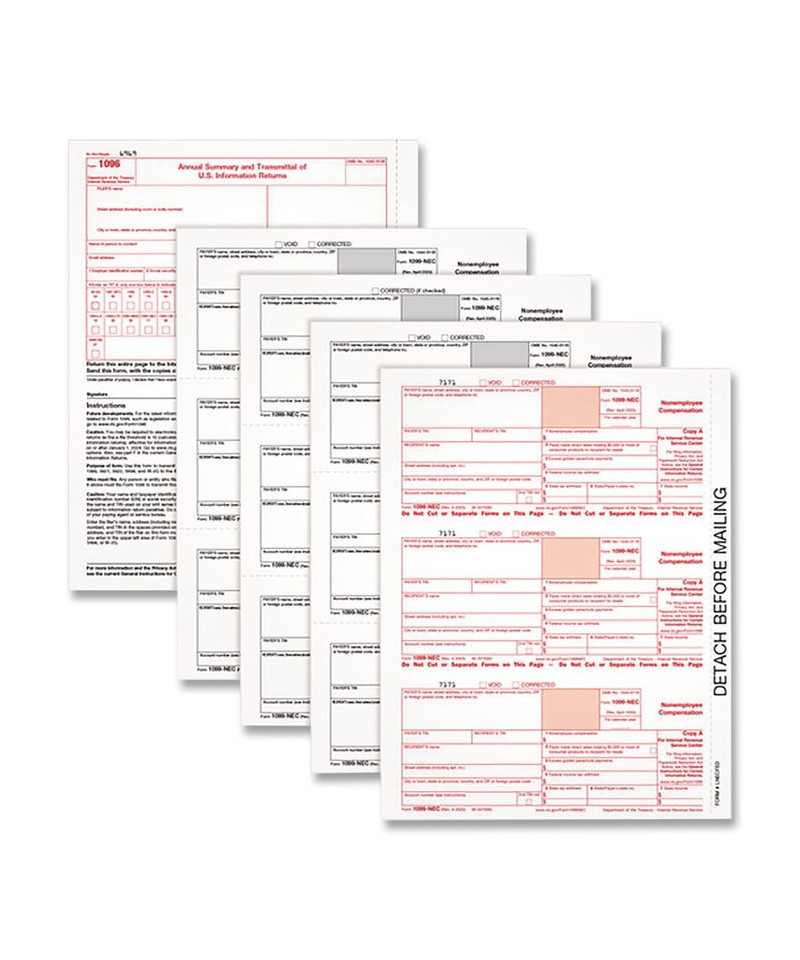 Get everything you need to report non-employee compensation. This online tax set includes four-part 1099-NEC sets, 1096 summary forms and access to Tax Forms Helper®, the fast and easy way to file. With Tax Forms Helper®, all it takes is a few clicks to upload your 1099-NEC data directly from QuickBooks Online or to import from a previous year. Use form 1099-NEC to report non-employee compensation paid to independent contractors or attorneys. 2023 IRS eFile law: if you're filing 10 or more returns, eFiling is required, and the Helper® is an easy, secure way to eFile to the IRS/SSA. As of 2024, the IRS has removed Copy-C from the 1099- NEC. You can also use the Helper® to save your digital copies! Also, as of 2025, Excess Golden Parachute Payments have moved from box 14 of the 1099-MISC to box 3 of the 1099-NEC.