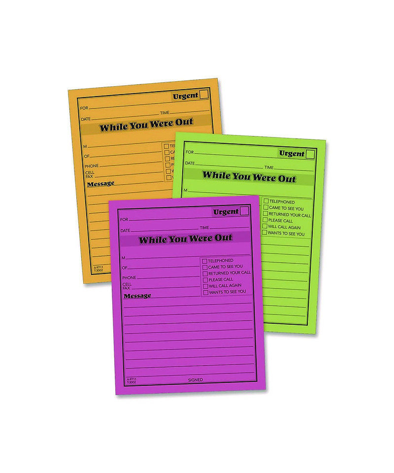 Stock up on Adams® eye-catching memo pads and never miss an important message again. Pads feature a bold While You Were Out header to capture your attention and a convenient pre-printed format for the details. All the essential information points are present and accounted for: Urgency Level, Recipient, Date, Time, Contact-Person Details and Means of Contact as well as plenty of ruled space for the message itself. Each top-bound sheet is printed on 16-lb bond paper stock.