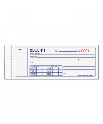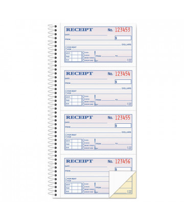 Add to cart Receipt Book, Three-Part Carbonless, 7 x 2.75, 4... $12.75 Security screen protects against alteration. Consecutively numbered in red. Red, white and blue color scheme.