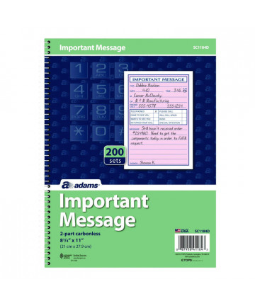 Add to cart Important Message Book, Two-Part Carbonless, 4... $13.17 Pre-formatted forms provide prompts for all the important details. Carbonless, multi-part format allows you to pass along priority messages and...