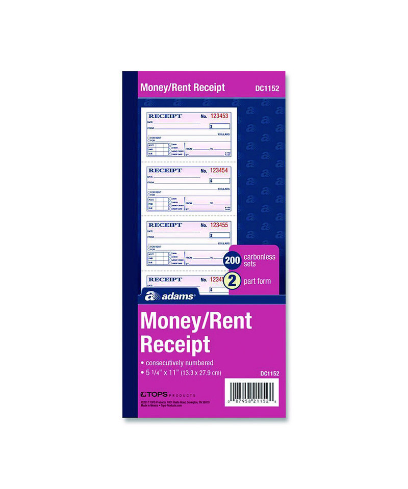 Add to cart Money/Rent Receipt Book, Two-Part Carbonless, 6.69 x... $4.33 Use for rent or any other type of payment. 2-part (white, canary paper sequence). Consecutively numbered within each book.