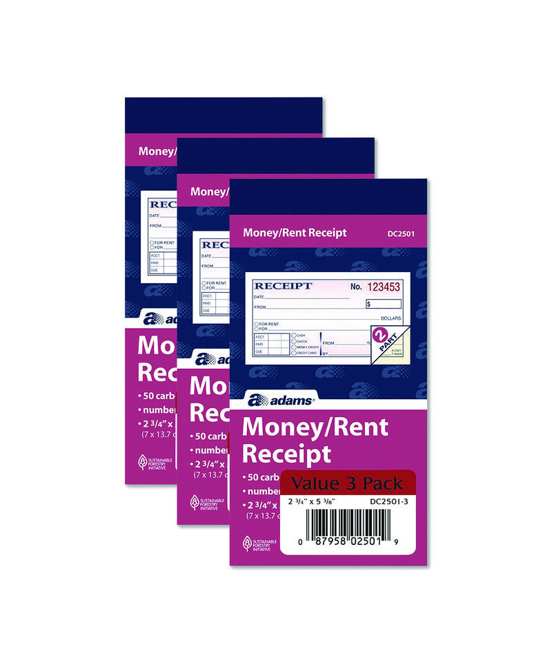 Add to cart Receipt Book, Two-Part Carbonless, 7 x 2.75, 4... $14.65 Security screen protects against alteration. Consecutively numbered in red. Red, white and blue color scheme.