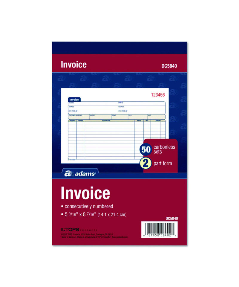 Convenient and versatile, Adams® Multipart General-Purpose Invoice Forms accommodate a wide range of scenarios. Though preformatted, their layout can be adapted to just about any product or service: retail sales, consultant services, maintenance services and more. Carbonless, multipart format provides you with clean administrative copies, and the wraparound cover allows you to place the front cover between sets as you fill out a form, minimizing the potential for write-through. Each form features space at top for your business's logo or name stamp.