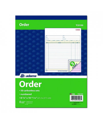 Easily keep hard copy records of each purchase order with the Adams® Multipart Purchase Order Pad. A comprehensive, preprinted layout features prompts for all the important details. With entry areas for purchaser, ship-to and administrative information as well as itemized order details, just about anything one might wish to capture can be accommodated. Carbonless, multipart format lets you provide a copy to the purchaser while keeping copies for yourself, and the pad's wraparound cover also allows you to place the front cover between sets as you fill out a form, minimizing the potential for write-through.