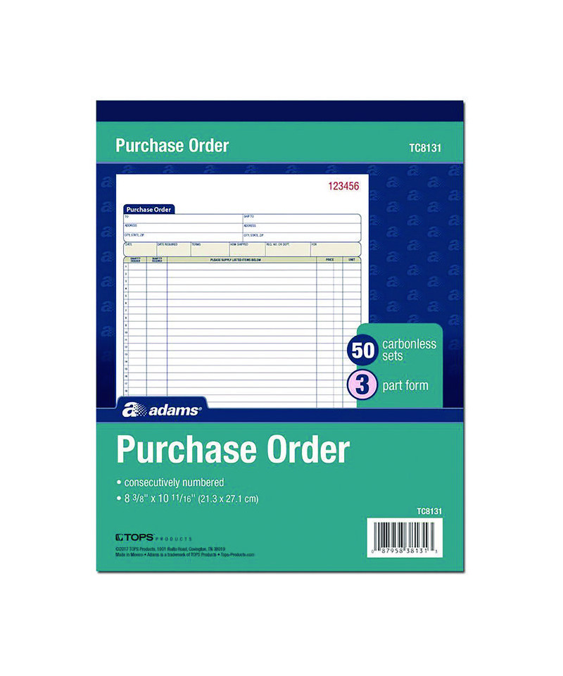 Easily keep hard copy records of each purchase order. Preprinted layout features prompts for all the important details—purchaser, ship-to and administrative information as well as itemized order details. Carbonless, multipart format with a wraparound cover—place the cover between sets to minimize the potential for write-through.