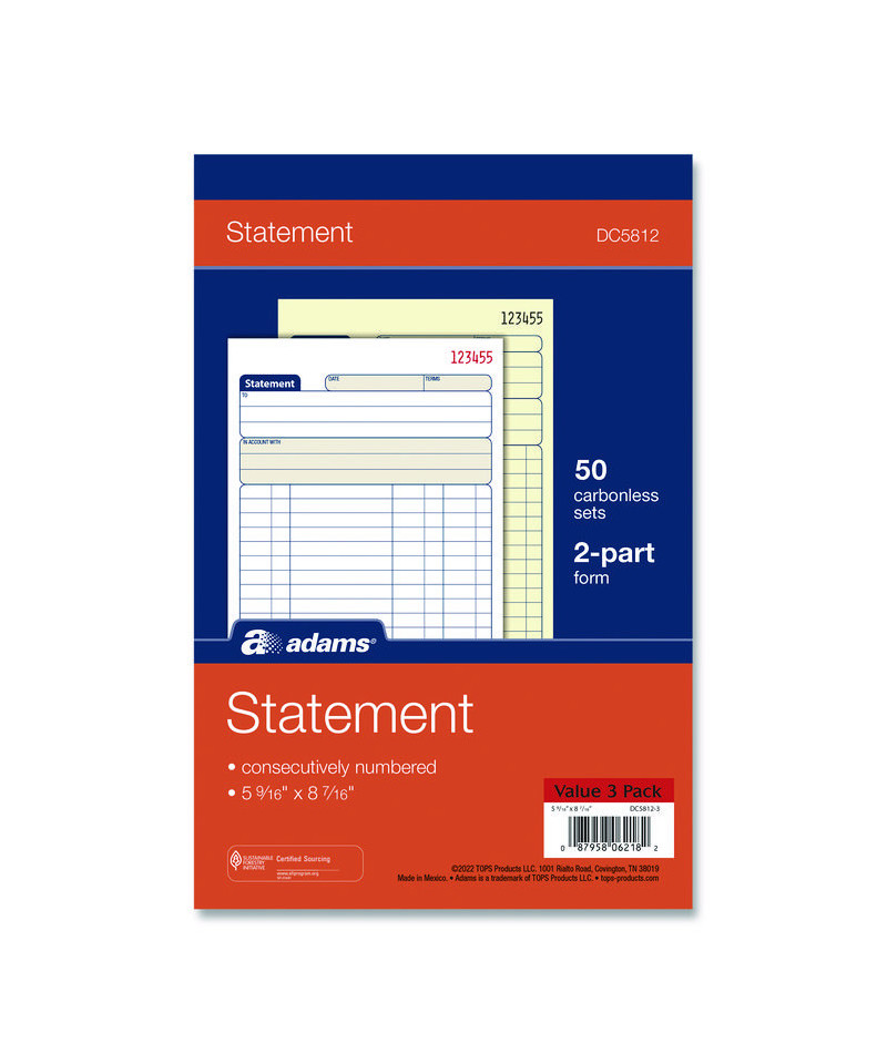 Adams® Multipart Statement Pads provide an easy, low-cost way to keep your customers' accounts current. Flexible formatting provides space to capture all the important details, while the multipart, carbonless design allows you provide a credit purchase receipt to your customer while keeping clean copies for your records. The pad's wraparound cover also allows you to place the front cover between sets as you fill out a form, minimizing the potential for write-through. Consecutively numbered sets simplify administrative bookkeeping.