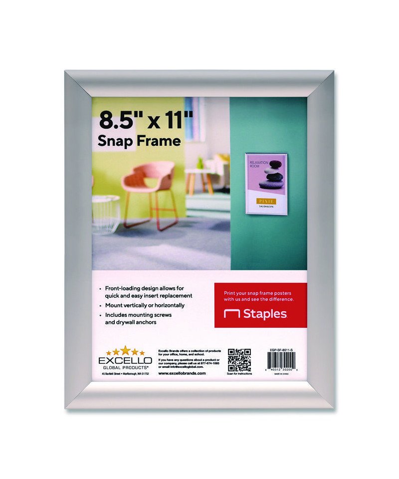 The Excello Global Products snap poster frame is a great way to display your signage and promotions. Front-loading design allows for quick and easy insert placement. The snap frame can be placed on a wall in landscape or portrait orientation. Includes mounting screws and drywall anchors.