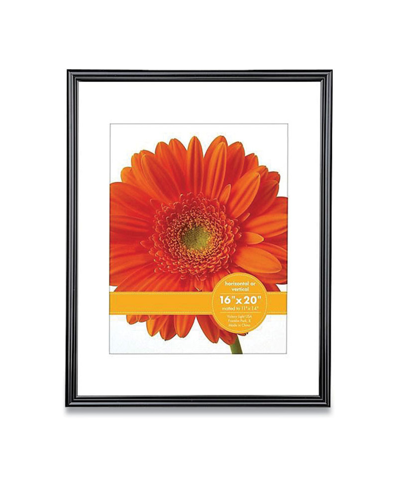 Classic poster frame is ideal for displaying art prints, work signage, custom photos and more. Includes a mat. Hang either vertically or horizontally to suit any space or document.