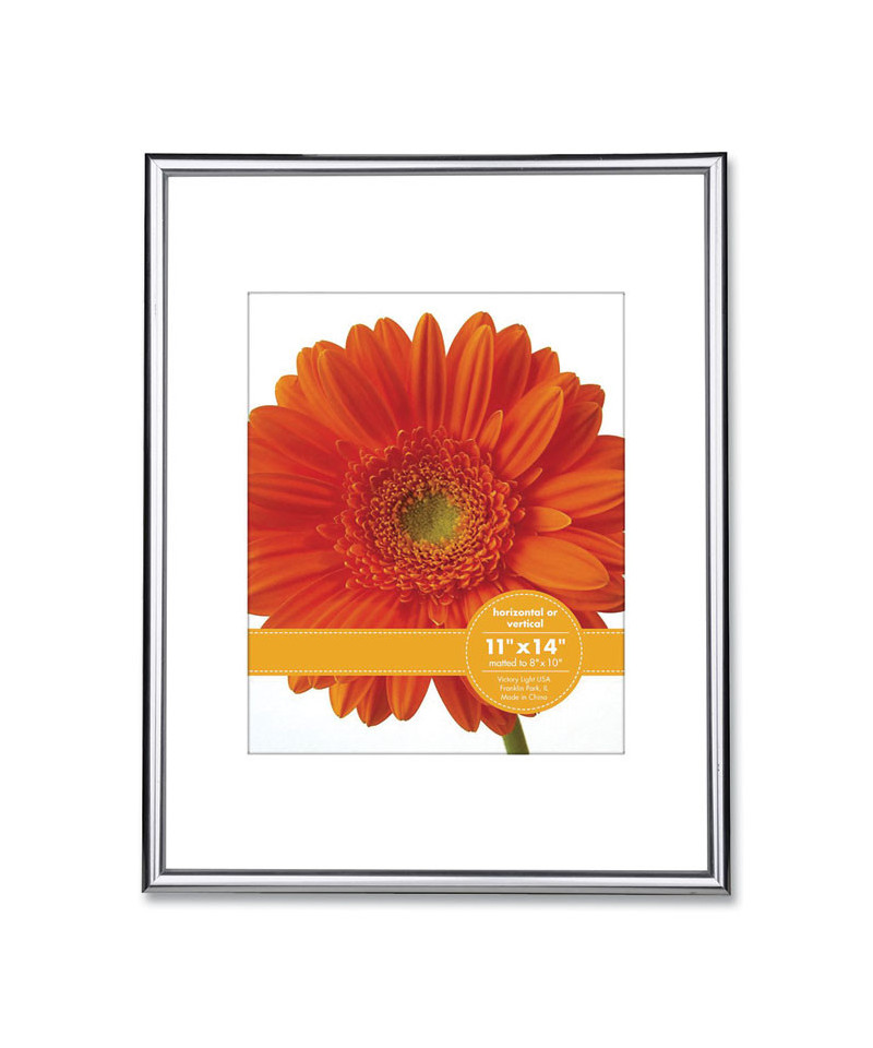 Enhance the aesthetic impact of your best photos and prints by displaying them in this sleek, contemporary frame. A narrow-thin profile, an understated metallic finish and a wide-format paperboard mat align perfectly with modern, minimalistic presentation trends. Compatible with vertical and horizontal wall-mount orientations.