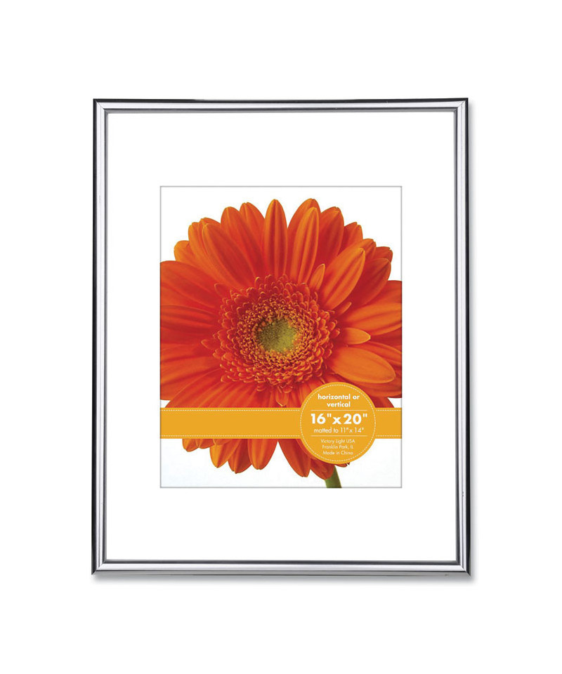 Enhance the aesthetic impact of your best photos and prints by displaying them in this sleek, contemporary frame. A narrow-thin profile, an understated metallic finish and a wide-format paperboard mat align perfectly with modern, minimalistic presentation trends. Compatible with vertical and horizontal wall-mount orientations.