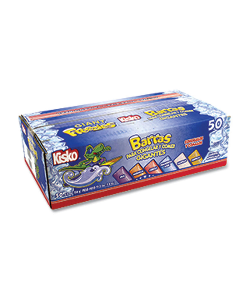 Beat the heat this summer with Kisko Giant Freezies.Comes with six different flavors like Grape, Orange, Cherry, Blue Raspberry, Cream Soda, and Tropical. Just freeze 'em and eat 'em. Great for cooling off during the middle of the day at the office, or sharing with the kids when they're playing outside. Kisko Giant Freezies are great in the summer, or year round if you just want the sweet, fruity taste of frozen ice treats.