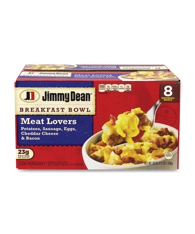 Delightful Jimmy Dean breakfast bowls that can satisfy your hunger quickly. This meat lovers bowl certainly lives up to its name. Made with real sausage, bacon, egg, potatoes and cheddar cheese, energizes you for long days.