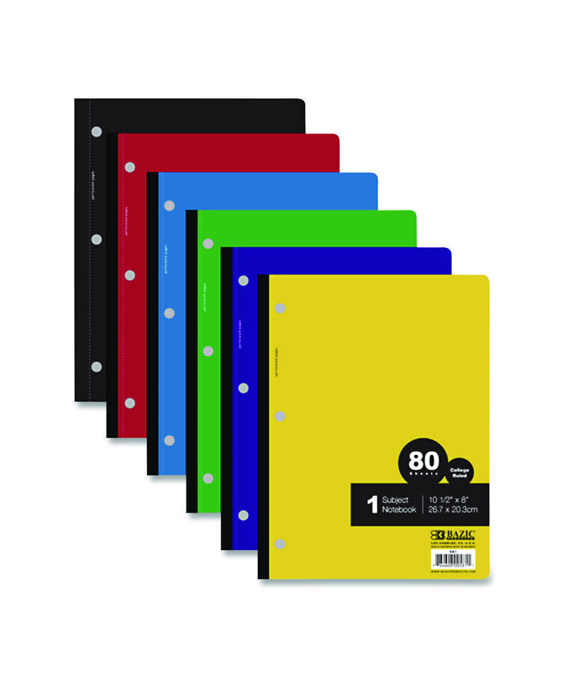 Prepare for class with BAZIC® Products Wireless Notebooks. Their smooth, wireless binding won't catch on your clothing or backpack, and their colorful covers are three-hole punched for easy insertion in ring binders. Quality sheets are ruled on both sides and perforated to ensure neat and clean separation. Great for students, these books are perfect for writing assignments and all your important schoolwork.