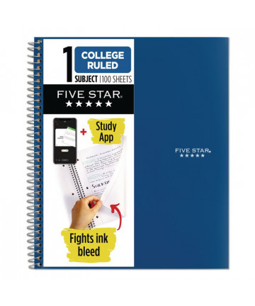 Lasts all year. Guaranteed! Durable, water-resistant poly covers protect your notes all year. Reinforced, tear-resistant divider pockets keep your loose sheets together. Spiral Lock® wire binding prevents coil snag, and high-quality paper provides excellent ink-bleed resistance. Easily inserts into any three-ring binder (sold separately). Scan, study and organize your notes with the Five Star Study App. Create instant flashcards and sync your notes to Google Drive to access them anywhere, from any device.