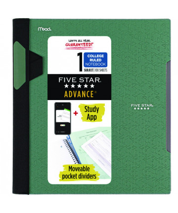 Letter Size Notebook, 1-Subject, Medium/College Rule, Metallic Green/White Cover, (100) 11 x 8.5 Sheets, 3/Pack