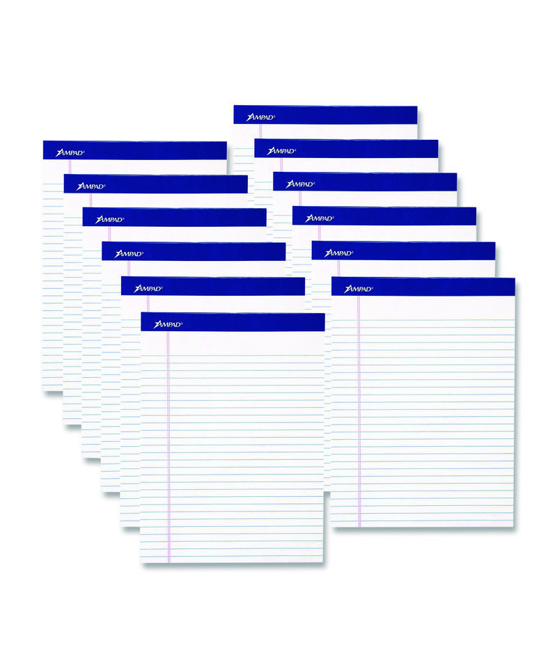 Ampad® Writing Pads offer the ultimate value in reliable everyday legal pads for home or office. The classic format long preferred by attorneys and professionals gives you quick access to notes and lists. A sturdy back provides firm writing support. Micro-perforated sheets detach easily for a tidy, organized notepad.