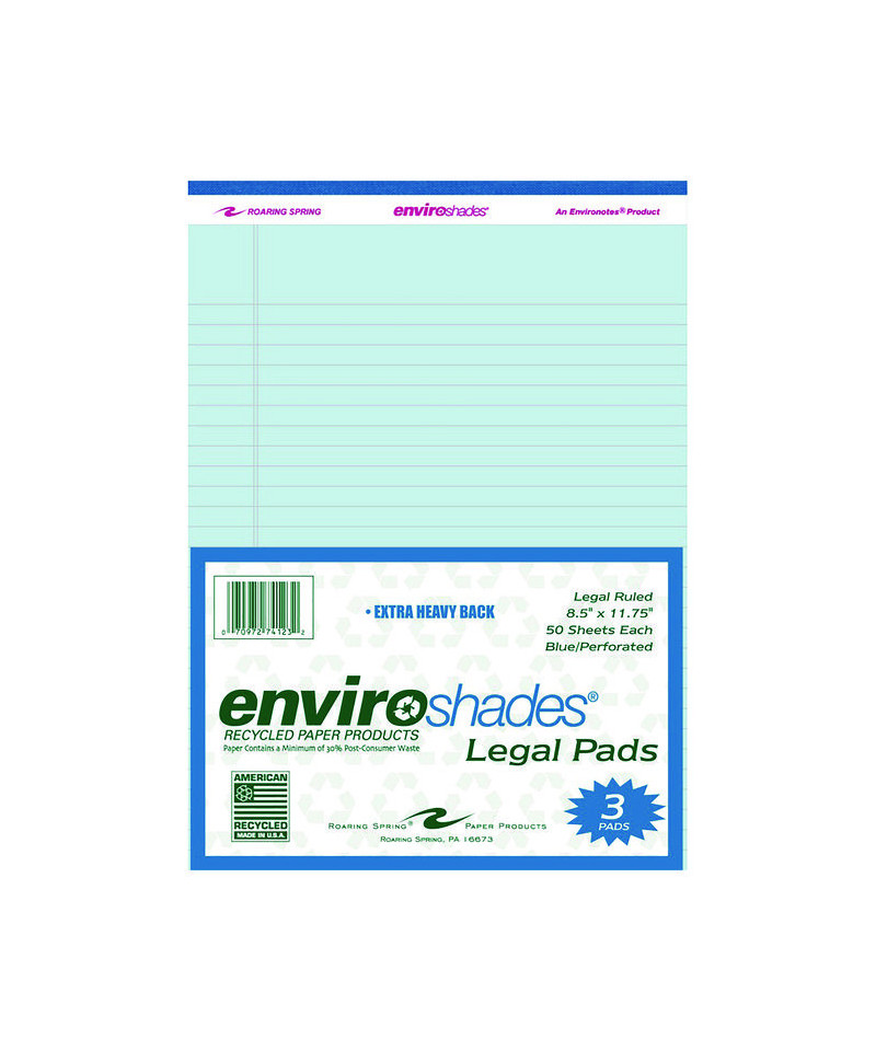 EnviroShades Legal Notepads, Wide/Legal Rule, (50) Blue 8.5 x 11 Sheets, 3/Pack