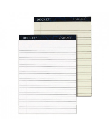 Smooth, 15# writing paper has legal ruled blue lines and double red margin lines. Sheets are micro-perforated for EZ removal. Paper is recycled. Stapled and taped construction.