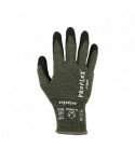 These gloves are made with heavy-duty aramid fiber for heat handling and ANSI A4 cut resistance, plus durable sandy nitrile coated palms for high strength grip and enhanced dexterity. Unlike other bulky cut-resistant gloves, the 18-gauge aramid fiber knit protects hands from heat and cuts while maintaining a soft, lightweight and flexible form fit. The snug knit cuffs are longer than most on the market, a feature that enhances fit and extends protection while keeping dirt and debris out. These safety work gloves are tested to EN407 Level 1 contact heat resistance for safety when handling high temperature materials.