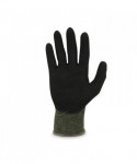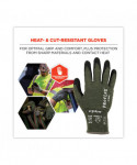 The ProFlex 7042 Nitrile Coated Cut-Resistant Gloves are made with heavy-duty aramid fiber for heat handling and ANSI A4 cut resistance, plus durable sandy nitrile coated palms for high strength grip and enhanced dexterity. Unlike other bulky cut-resistant gloves, the 18-gauge aramid fiber knit protects hands from heat and cuts while maintaining a soft, lightweight and flexible form fit. The snug knit cuffs are longer than most on the market, a feature that enhances fit and extends protection while keeping dirt and debris out. These safety work gloves are tested to EN407 Level 1 contact heat resistance for safety when handling high temperature materials.