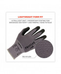 These gloves feature microfoam nitrile coated palms for excellent grip and dexterity with an ultra-lightweight and soft form fit. The 15-gauge nylon-spandex knit is comfortably lightweight and flexible while still meeting ANSI Level 5 abrasion resistance for long lasting durability. The snug knit cuffs are longer than most on the market, a feature that enhances fit and extends protection while keeping dirt and debris out. The palms of these safety gloves are dipped in a microfoam nitrile for excellent grip, dexterity and feel on a variety of surfaces.