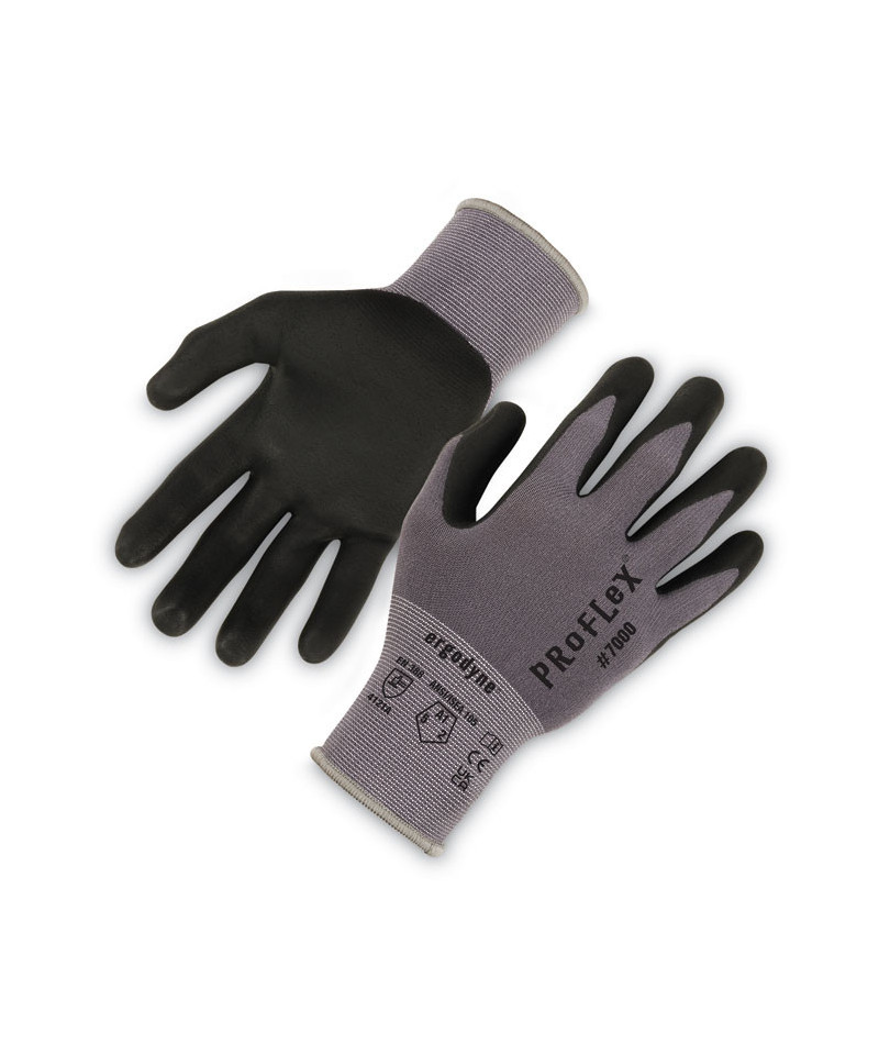 The ProFlex 7000 Nitrile Coated Gloves feature microfoam nitrile coated palms for excellent grip and dexterity with an ultra-lightweight and soft form fit. The 15-Gauge nylon-spandex knit is comfortably lightweight and flexible while still meeting ANSI Level 5 abrasion resistance for long lasting durability and general purpose protection against abrasive objects and surfaces. Gauge indicates the number of stitching rows per inch—a higher gauge will have more flexibility and less bulk. The snug knit cuffs are longer than most on the market, a feature that enhances fit and extends protection while keeping dirt and debris out. The palms of these safety gloves are dipped in a microfoam nitrile for excellent grip, dexterity and feel on a variety of surfaces.
