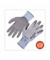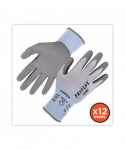 The ProFlex 7025 PU Coated Cut-Resistant Gloves feature ANSI A2 cut protection for safety around sharp materials. Unlike other bulky cut-resistant gloves, the 18-gauge HPPE nylon-spandex knit protects hands while maintaining a soft, lightweight and flexible form fit. The snug knit cuffs are longer than most on the market, a feature that enhances fit and extends protection while keeping dirt and debris out. The palms of these safety gloves are dipped in PU (polyurethane), a strong but flexible coating that delivers secure grip with enhanced dexterity on a variety of surfaces. The 18-gauge seamless HPPE nylon-spandex knit is tested to ANSI A2 cut protection and level 3 abrasion resistance for safety around sharp or rough materials.