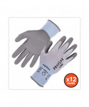 The ProFlex 7025 PU Coated Cut-Resistant Gloves feature ANSI A2 cut protection for safety around sharp materials. Unlike other bulky cut-resistant gloves, the 18-gauge HPPE nylon-spandex knit protects hands while maintaining a soft, lightweight and flexible form fit. The snug knit cuffs are longer than most on the market, a feature that enhances fit and extends protection while keeping dirt and debris out. The palms of these safety gloves are dipped in PU (polyurethane), a strong but flexible coating that delivers secure grip with enhanced dexterity on a variety of surfaces. The 18-gauge seamless HPPE nylon-spandex knit is tested to ANSI A2 cut protection and level 3 abrasion resistance for safety around sharp or rough materials.