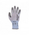 These gloves feature ANSI A2 cut protection for safety around sharp materials. Unlike other bulky cut-resistant gloves, the 18-gauge HPPE nylon-spandex knit protects hands while maintaining a soft, lightweight and flexible form fit. The snug knit cuffs are longer than most on the market, a feature that enhances fit and extends protection while keeping dirt and debris out. The palms of these safety gloves are dipped in PU (polyurethane), a strong but flexible coating that delivers secure grip with enhanced dexterity on a variety of surfaces. The 18-gauge seamless HPPE nylon-spandex knit is tested to ANSI A2 cut protection and level 3 abrasion resistance for safety around sharp or rough materials.