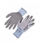 The ProFlex 7025 PU Coated Cut-Resistant Gloves feature ANSI A2 cut protection for safety around sharp materials. Unlike other bulky cut-resistant gloves, the 18-gauge HPPE nylon-spandex knit protects hands while maintaining a soft, lightweight and flexible form fit. The snug knit cuffs are longer than most on the market, a feature that enhances fit and extends protection while keeping dirt and debris out. The palms of these safety gloves are dipped in PU (polyurethane), a strong but flexible coating that delivers secure grip with enhanced dexterity on a variety of surfaces. The 18-gauge seamless HPPE nylon-spandex knit is tested to ANSI A2 cut protection and level 3 abrasion resistance for safety around sharp or rough materials.
