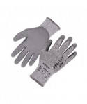 These gloves feature ANSI A3 cut protection for safety around sharp materials. The form-fitting 13-gauge HPPE nylon-spandex knit protects from cuts and knicks without compromising flexibility or comfort. The snug knit cuffs are longer than most on the market, a feature that enhances fit and extends protection while keeping dirt and debris out. The palms of these safety gloves are dipped in PU (polyurethane), a strong but flexible coating that delivers secure grip with enhanced dexterity on a variety of surfaces. The 13-gauge seamless HPPE nylon-spandex knit is tested to ANSI A3 cut protection and Level 6 abrasion resistance for safety around sharp or rough materials.
