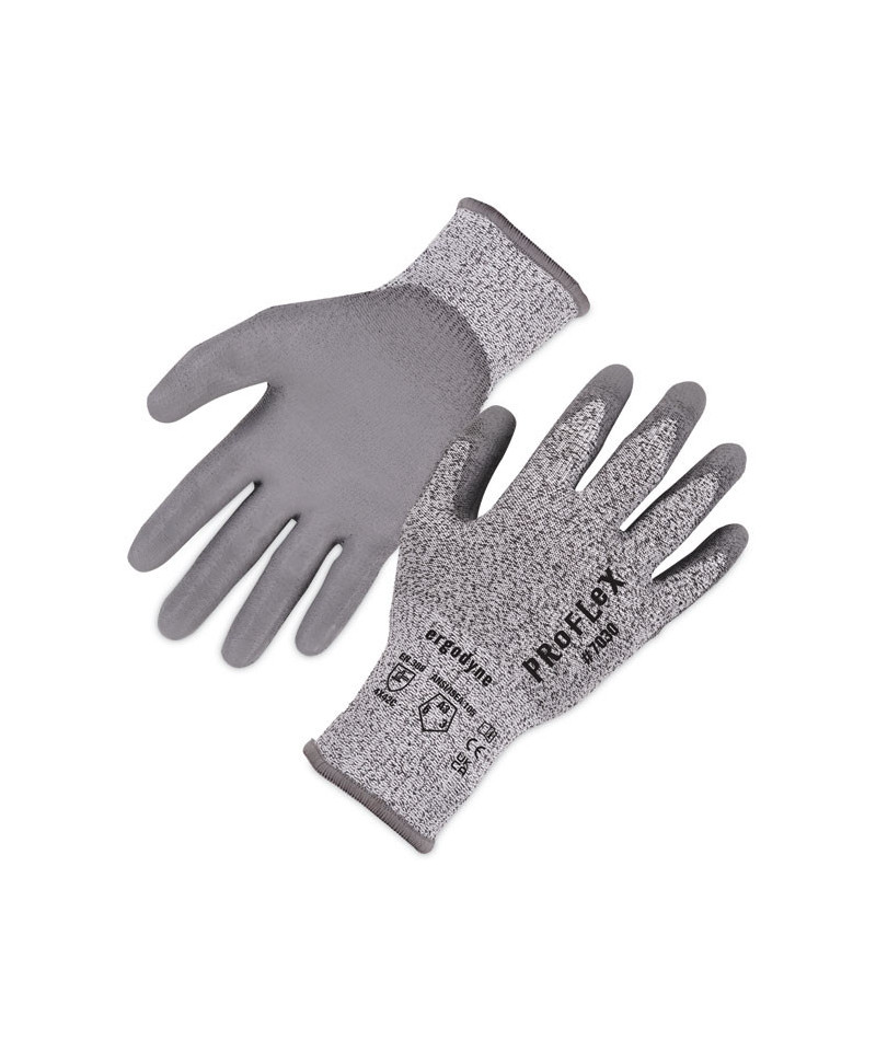 The ProFlex 7030 PU Coated Cut-Resistant Gloves feature ANSI A3 cut protection for safety around sharp materials. The form-fitting 13-gauge HPPE nylon-spandex knit protects from cuts and knicks without compromising flexibility or comfort. The snug knit cuffs are longer than most on the market, a feature that enhances fit and extends protection while keeping dirt and debris out. The palms of these safety gloves are dipped in PU (polyurethane), a strong but flexible coating that delivers secure grip with enhanced dexterity on a variety of surfaces. The 13-gauge seamless HPPE nylon-spandex knit is tested to ANSI A3 cut protection and Level 6 abrasion resistance for safety around sharp or rough materials.