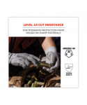 These gloves feature ANSI A3 cut protection for safety around sharp materials. The form-fitting 13-gauge HPPE nylon-spandex knit protects from cuts and knicks without compromising flexibility or comfort. The snug knit cuffs are longer than most on the market, a feature that enhances fit and extends protection while keeping dirt and debris out. The palms of these safety gloves are dipped in PU (polyurethane), a strong but flexible coating that delivers secure grip with enhanced dexterity on a variety of surfaces. The 13-gauge seamless HPPE nylon-spandex knit is tested to ANSI A3 cut protection and Level 6 abrasion resistance for safety around sharp or rough materials.