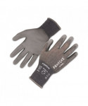 These gloves feature PU coated palms for excellent grip and dexterity, plus ANSI A4 cut protection for safety around sharp materials. Unlike other bulky cut-resistant gloves, the 18-Gauge HPPE polyester knit protects hands while maintaining a soft, lightweight and flexible form fit. The snug knit cuffs are longer than most on the market, a feature that enhances fit and extends protection while keeping dirt and debris out. The palms of these safety gloves are dipped in PU (polyurethane), a strong but flexible coating that delivers secure grip with enhanced dexterity on a variety of surfaces. The 18-Gauge seamless HPPE polyester knit is tested to ANSI A4 cut protection and Level 3 abrasion resistance for safety around sharp or rough materials.