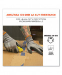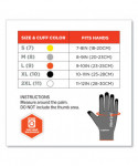 These gloves feature nitrile coated palms and reinforced thumb saddles for extra-strength grip and durability in rough environments. Rated to ANSI A4 cut protection and Level 3 abrasion resistance, the 18-gauge HPPE nylon-spandex knit protects hands from cuts, punctures and abrasions without compromising dexterity or comfort. The snug knit cuffs are longer than most, a feature that enhances fit and extends protection while keeping dirt and debris out.
