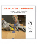 These gloves feature nitrile coated palms and reinforced thumb saddles for extra-strength grip and durability in rough environments. Rated to ANSI A4 cut protection and Level 3 abrasion resistance, the 18-gauge HPPE nylon-spandex knit protects hands from cuts, punctures and abrasions without compromising dexterity or comfort. The snug knit cuffs are longer than most, a feature that enhances fit and extends protection while keeping dirt and debris out.