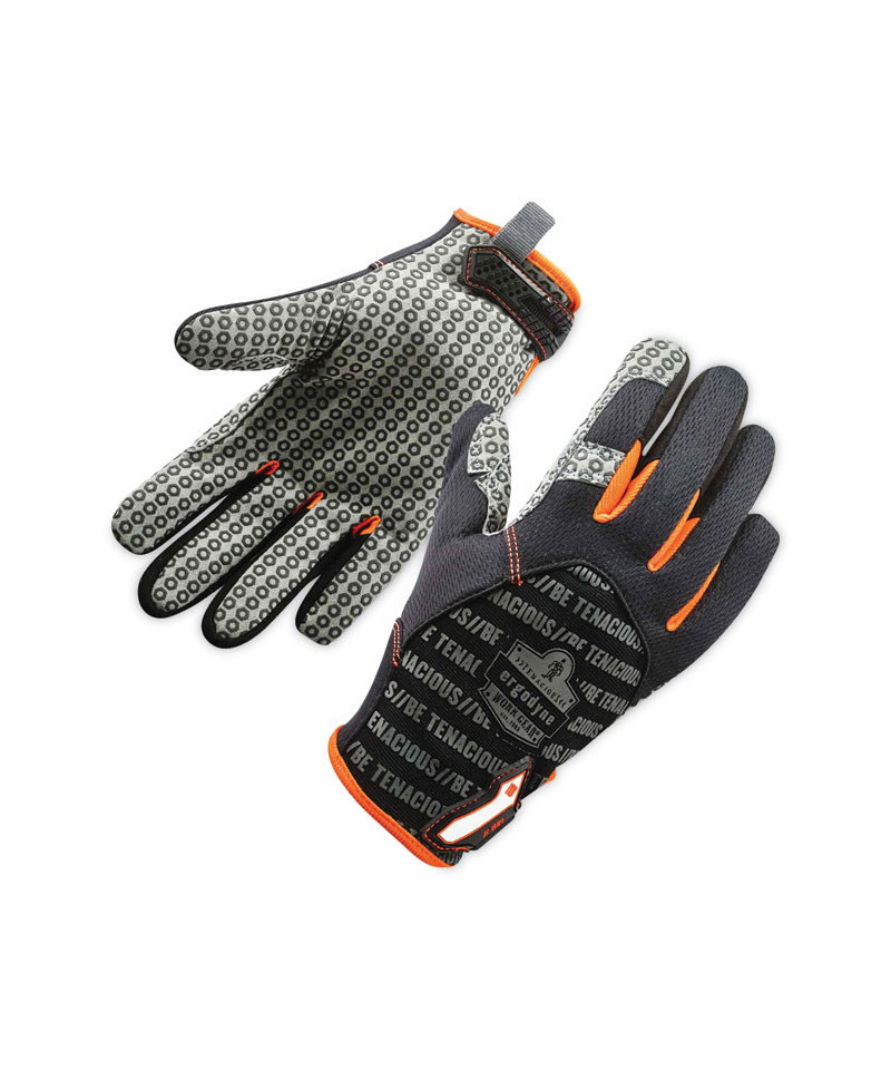 Smooth surface handling work gloves feature a super-tacky hex silicone palm and wrapped index finger for sure-handed grip when handling dry, smooth surfaces such as boxes or cartons. These comfortable safety gloves are made of a flexible and breathable poly mesh for cool, no-bulk wear. A low-profile hook & loop closure means a secure fit, while the pull-on tab makes for easy on and off. An ID space along the hook & loop closure helps workers keep track of their gloves. A great multipurpose glove for anyone needing versatile hand protection when working with smooth surfaces.