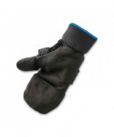 These gloves/flip-top mittens easily convert from toasty mittens to fingerless gloves for detail work. Lined with soft microfleece to trap body heat for warmth in the cold. The flip-top mitten and thumb stow easily when not in use to convert from mittens to insulated fingerless work gloves. The mitten pocket keeps the top out of your way and free from creating a snag hazard. These thermal work gloves are made with polyester knit and microfleece for extreme protection in cool to cold conditions. The rugged synthetic leather palm offers grip, durability and protection for long wear. The elastic wrist cuff can fit over jacket sleeves to keep snow and cold out. These winter work gloves feature reflective accents to enhance wearer visibility and hand signaling.