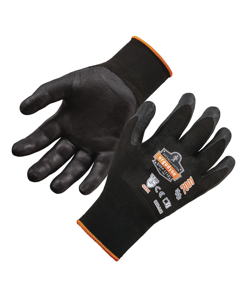 The ProFlex 7001 Nitrile Coated Gloves feature a durable DSX coating for optimal grip and dexterity in dry conditions. The 18-gauge nylon-spandex knit makes for a soft, lightweight and flexible form fit while still meeting ANSI Level 3 Abrasion Resistance for safety around rough materials. Ideal for handling small parts, the combination of DSX coating and thin form-fitting knit delivers enhanced dexterity compared to bulkier safety gloves. The snug knit cuffs are longer than most on the market, a feature that enhances fit and extends protection while keeping dirt and debris out. Coated in two-layer DSX nitrile, (D)ry (S)urface E(X)treme, these utility work gloves are designed for optimal performance when handling dry materials and surfaces. The double layers of smooth abrasion-resistant nitrile boost glove durability and feel while remaining comfortably flexible for enhanced dexterity with minimal hand fatigue.