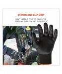 The ProFlex 7001 Nitrile Coated Gloves feature a durable DSX coating for optimal grip and dexterity in dry conditions. The 18-gauge nylon-spandex knit makes for a soft, lightweight and flexible form fit while still meeting ANSI level 2 abrasion resistance for safety around rough materials. Ideal for handling small parts, the combination of DSX coating and thin form-fitting knit delivers enhanced dexterity compared to bulkier safety gloves. The snug knit cuffs are longer than most on the market, a feature that enhances fit and extends protection while keeping dirt and debris out. Coated in two-layer DSX nitrile, a.k.a. (D)ry (S)urface E(X)treme, these utility work gloves are designed for optimal performance when handling dry materials and surfaces. The double layers of smooth abrasion-resistant nitrile boost glove durability and feel while remaining comfortably flexible for enhanced dexterity.