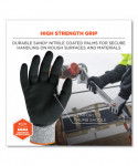 The ProFlex 7031 Nitrile Coated Gloves feature sandy nitrile coated palms and thumb reinforcements for extra-strength grip and durability in rough environments. Rated to ANSI A3 cut protection and level 5 abrasion resistance, the 13-gauge HPPE nylon-spandex knit protects hands from cuts, punctures and abrasions without compromising dexterity or comfort. The snug knit cuffs are longer than most on the market, a feature that enhances fit and extends protection while keeping dirt and debris out. Both the palms and thumbs of these safety gloves are coated with sandy nitrile for secure grip on even the roughest surfaces. Among the strongest coatings available, the sandy nitrile dip boosts glove durability while remaining comfortably flexible for enhanced dexterity and minimal hand fatigue.