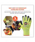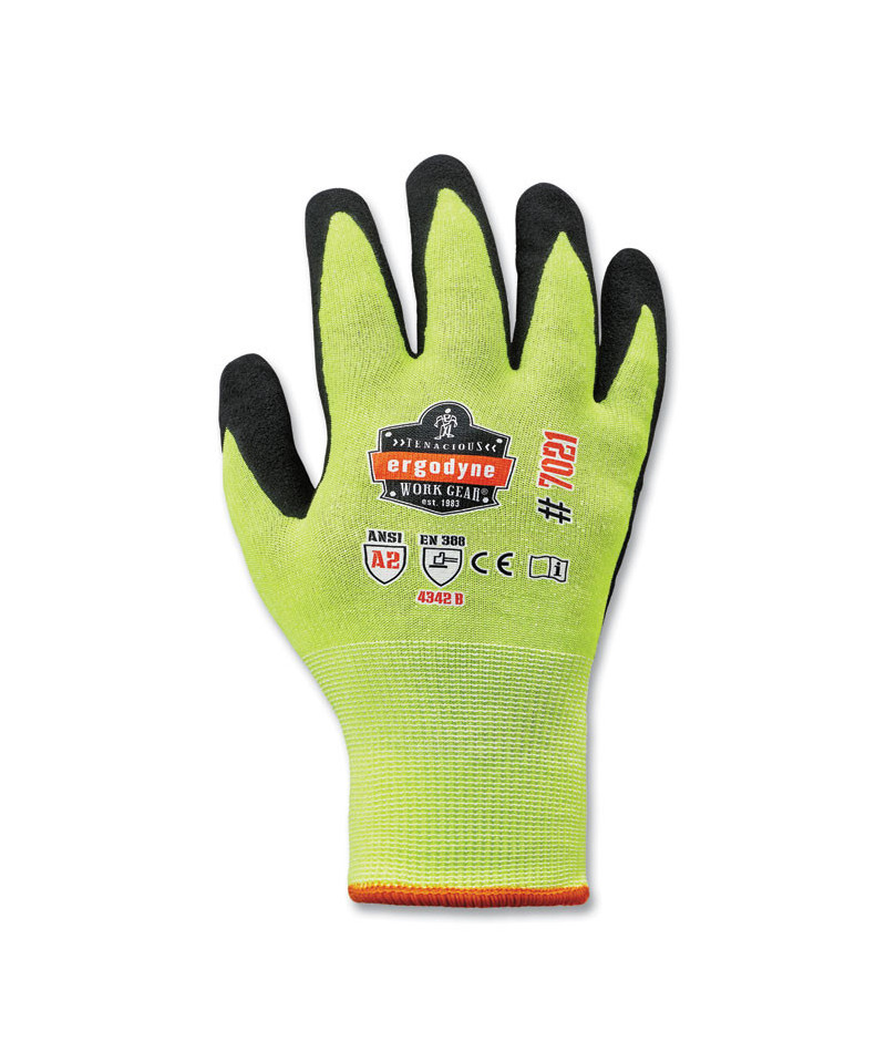 The ProFlex 7021 Nitrile Coated Gloves feature ANSI A2 cut protection for safety around sharp materials. Unlike other bulky cut-resistant gloves, the 18-gauge HPPE nylon-spandex knit protects hands while maintaining a soft, lightweight and flexible form fit. The snug knit cuffs are longer than most on the market, a feature that enhances fit and extends protection while keeping dirt and debris out. Coated in WSX nitrile, (W)et (S)urface E(X)treme, these utility work gloves are designed for optimal performance when handling wet or oily materials and surfaces. To prevent hands from overheating, they are first dipped in a water-based PU coating that wicks sweat and allows airflow to pass through. Then, they are dipped in an innovative anti-slip sandy nitrile designed to absorb and disperse liquids from the surface.