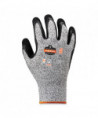The ProFlex 7031 Nitrile-Coated Gloves feature sandy nitrile coated palms and thumb reinforcements for extra-strength grip and durability in rough environments. Rated to ANSI A3 cut protection and Level 4 abrasion resistance, the 13-gauge HPPE nylon-spandex knit protects hands from cuts, punctures and abrasions without compromising dexterity or comfort. The snug knit cuffs are longer than most on the market, a feature that enhances fit and extends protection while keeping dirt and debris out. Both the palms and thumbs of these safety gloves are coated with sandy nitrile for secure grip on even the roughest surfaces. Among the strongest coatings available, the sandy nitrile dip boosts glove durability while remaining comfortably flexible for enhanced dexterity and minimal hand fatigue.