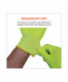 These food grade gloves are made with breathable and non-irritating TenaLux yarn for maximum comfort that does not compromise protection. Unlike other anti-cut technologies, TenaLux yarn is constructed of high-performance polyethylene (HPPE) fibers to achieve a high level of cut resistance without glass or steel. These cut-proof gloves are tested to FDA CFR 175.300 for total extractive residues. This approval means the gloves will not contaminate food at any process point-including prepping, packaging and transporting. The lightweight knit of the TenaLux has 360° breathability and a cool-to-the-touch feel to prevent sweaty hands and overheating. The seamless knit cuff fits comfortably snug, keeping dirt and debris from getting into gloves. The Hi-Vis color enhances visibility for safety w