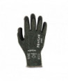 These nitrile coated cut-resistant gloves are made with heavy-duty aramid fiber for heat handling and ANSI A7 cut resistance, plus durable sandy nitrile coated palms for high strength grip and enhanced dexterity. The form-fitting 13-gauge aramid fiber knit protects hands from heat and cuts without compromising flexibility or comfort. The snug knit cuffs are longer than most on the market, a feature that enhances fit and extends protection while keeping dirt and debris out. These safety work gloves are tested to EN407 Level 1 contact heat resistance for safety when handling high temperature materials. A measure of how well the glove will insulate hands from heat, Level 1 contact heat resistance indicates the glove can withstand temperatures up to 100° C/212° F for up to 15 seconds.
