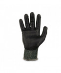 These nitrile coated cut-resistant gloves are made with heavy-duty aramid fiber for heat handling and ANSI A7 cut resistance, plus durable sandy nitrile coated palms for high strength grip and enhanced dexterity. The form-fitting 13-gauge aramid fiber knit protects hands from heat and cuts without compromising flexibility or comfort. The snug knit cuffs are longer than most on the market, a feature that enhances fit and extends protection while keeping dirt and debris out. These safety work gloves are tested to EN407 Level 1 contact heat resistance for safety when handling high temperature materials. A measure of how well the glove will insulate hands from heat, Level 1 contact heat resistance indicates the glove can withstand temperatures up to 100° C/212° F for up to 15 seconds.