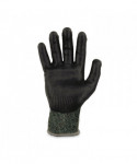 These nitrile coated cut-resistant gloves are made with heavy-duty aramid fiber for heat handling and ANSI A7 cut resistance, plus durable sandy nitrile coated palms for high strength grip and enhanced dexterity. The form-fitting 13-gauge aramid fiber knit protects hands from heat and cuts without compromising flexibility or comfort. The snug knit cuffs are longer than most on the market, a feature that enhances fit and extends protection while keeping dirt and debris out. These safety work gloves are tested to EN407 Level 1 contact heat resistance for safety when handling high temperature materials. A measure of how well the glove will insulate hands from heat, Level 1 contact heat resistance indicates the glove can withstand temperatures up to 100° C/212° F for up to 15 seconds.