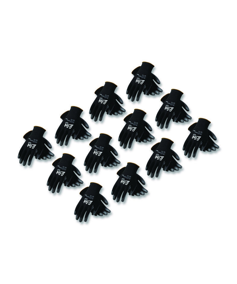 Keep yourself and your crew properly equipped. G-Tek® GP gloves are ideal for electronic and computer assembly, quality-control and similar applications. Cut-, puncture-, abrasion- and tear-resistant nylon shell features a seamless, breathable design for increased comfort and improved finger dexterity. Polyurethane-coated fingertips and palm allow you to get a better grip on wet and/or oily objects. Knit wrist helps prevent dirt and debris from entering your gloves. Machine washable.