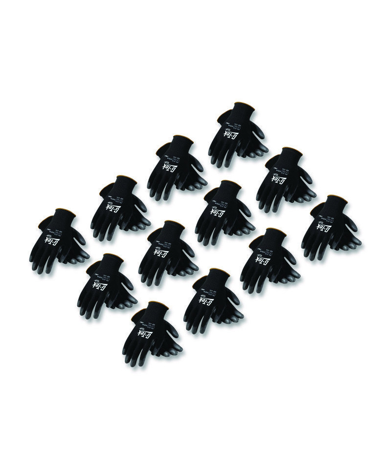 Keep yourself and your crew properly equipped. G-Tek® GP gloves are ideal for electronic and computer assembly, quality-control and similar applications. Cut-, puncture-, abrasion- and tear-resistant nylon shell features a seamless, breathable design for increased comfort and improved finger dexterity. Polyurethane-coated fingertips and palm allow you to get a better grip on wet and/or oily objects. Knit wrist helps prevent dirt and debris from entering your gloves. Machine washable.